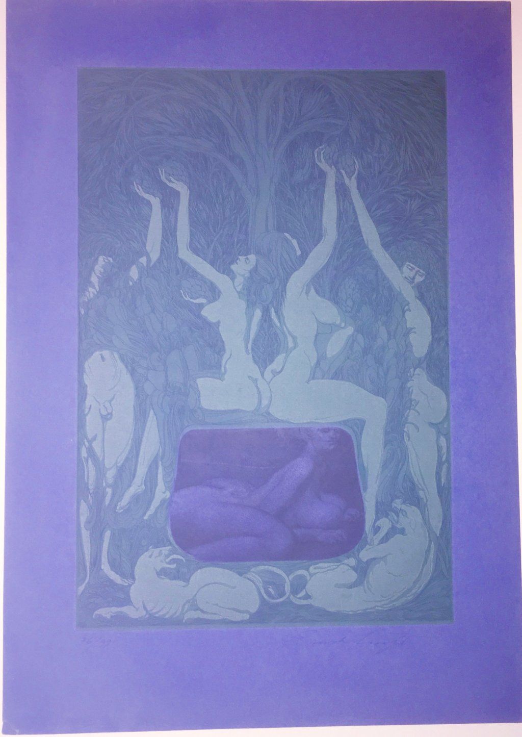 Farb Aquatinta Radierung mit blauem Büttenrand