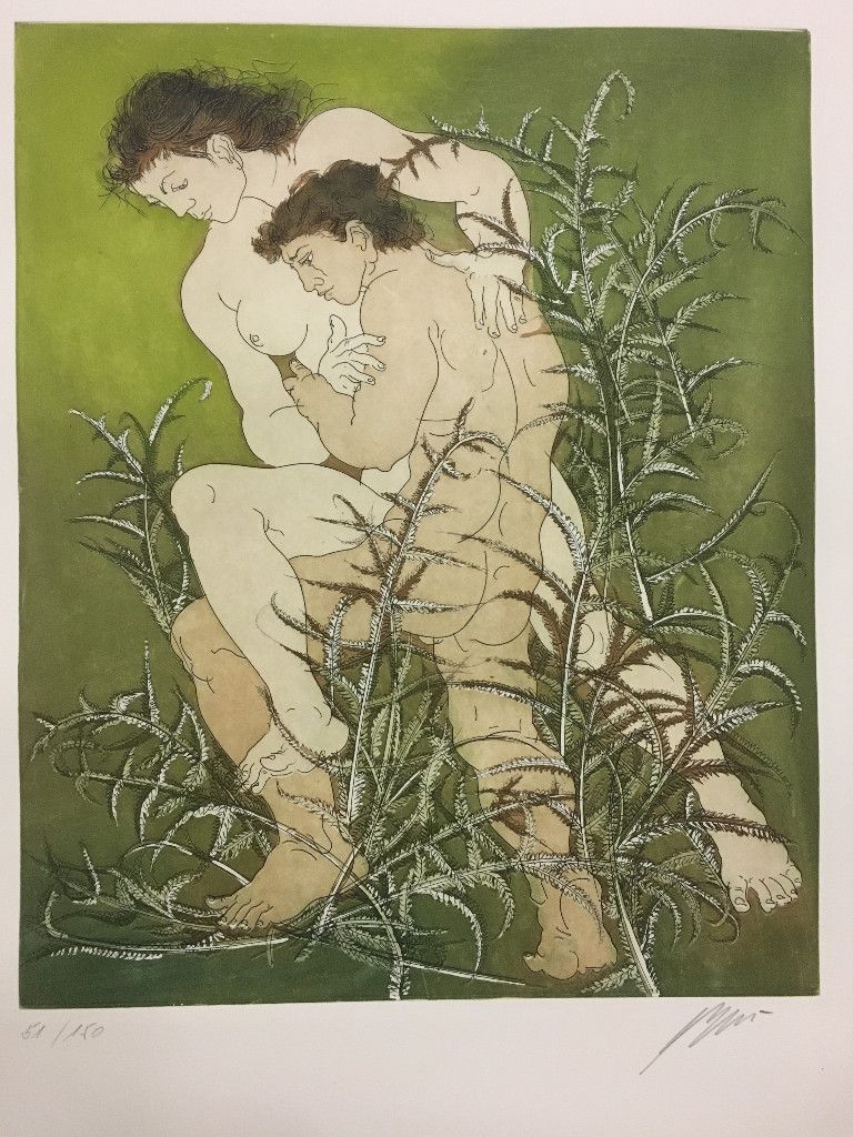 Aquatinta und Farb-Radierung auf Büttenpapier , Auflage 51/150 EX, herausgegeben von Ernst Scheidegger Verlag, gedruckt bei Hedy Weber im sehr gutem Zustand, Druckfrisch.