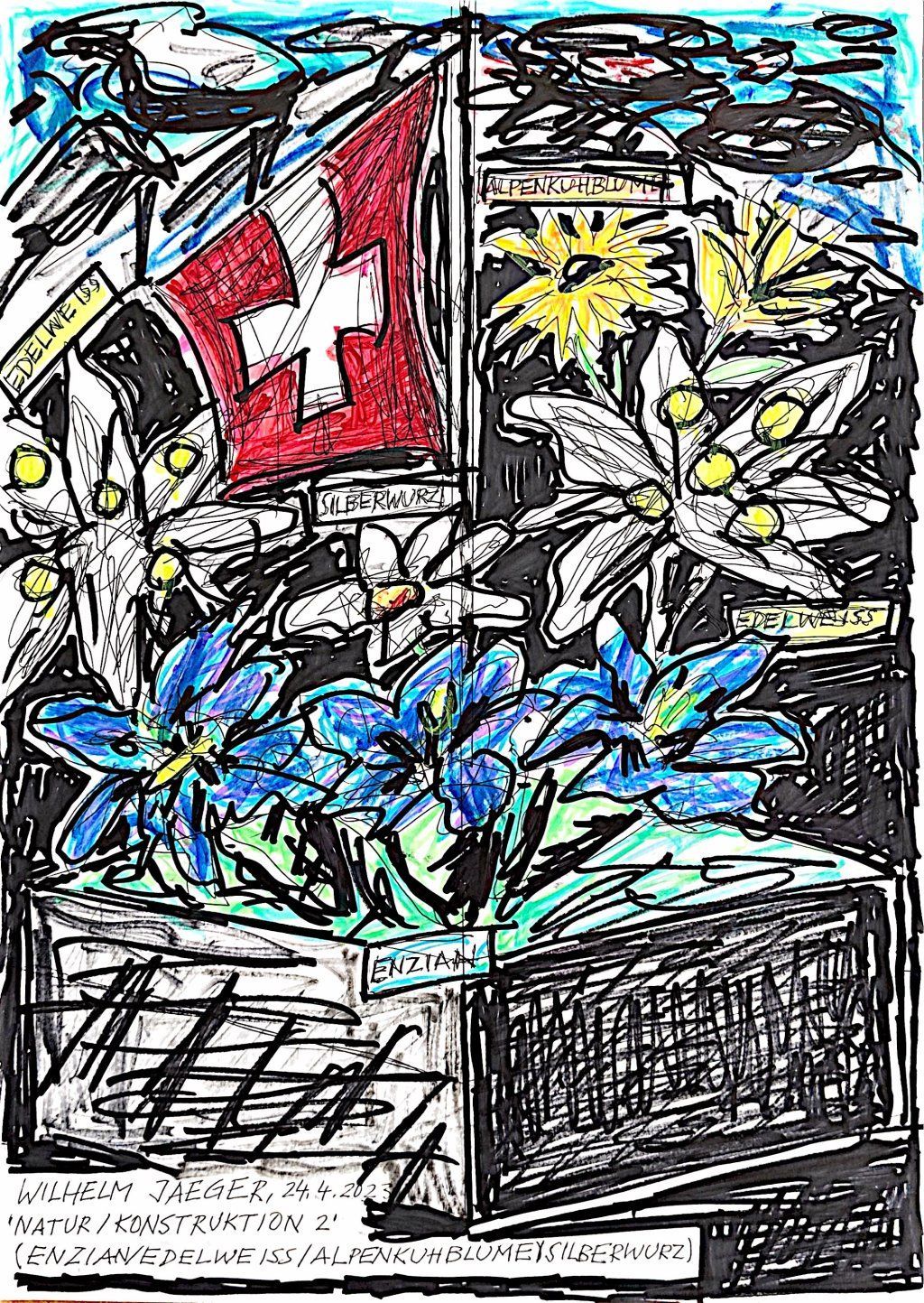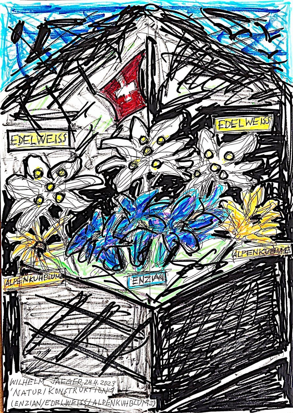 Wilhelm Jaeger hat diese Zeichnungen im April 2023 im Alter von 82 Jahren gezeichnet, sie gehören zu den neusten Zeichnungen vom Künstler.
